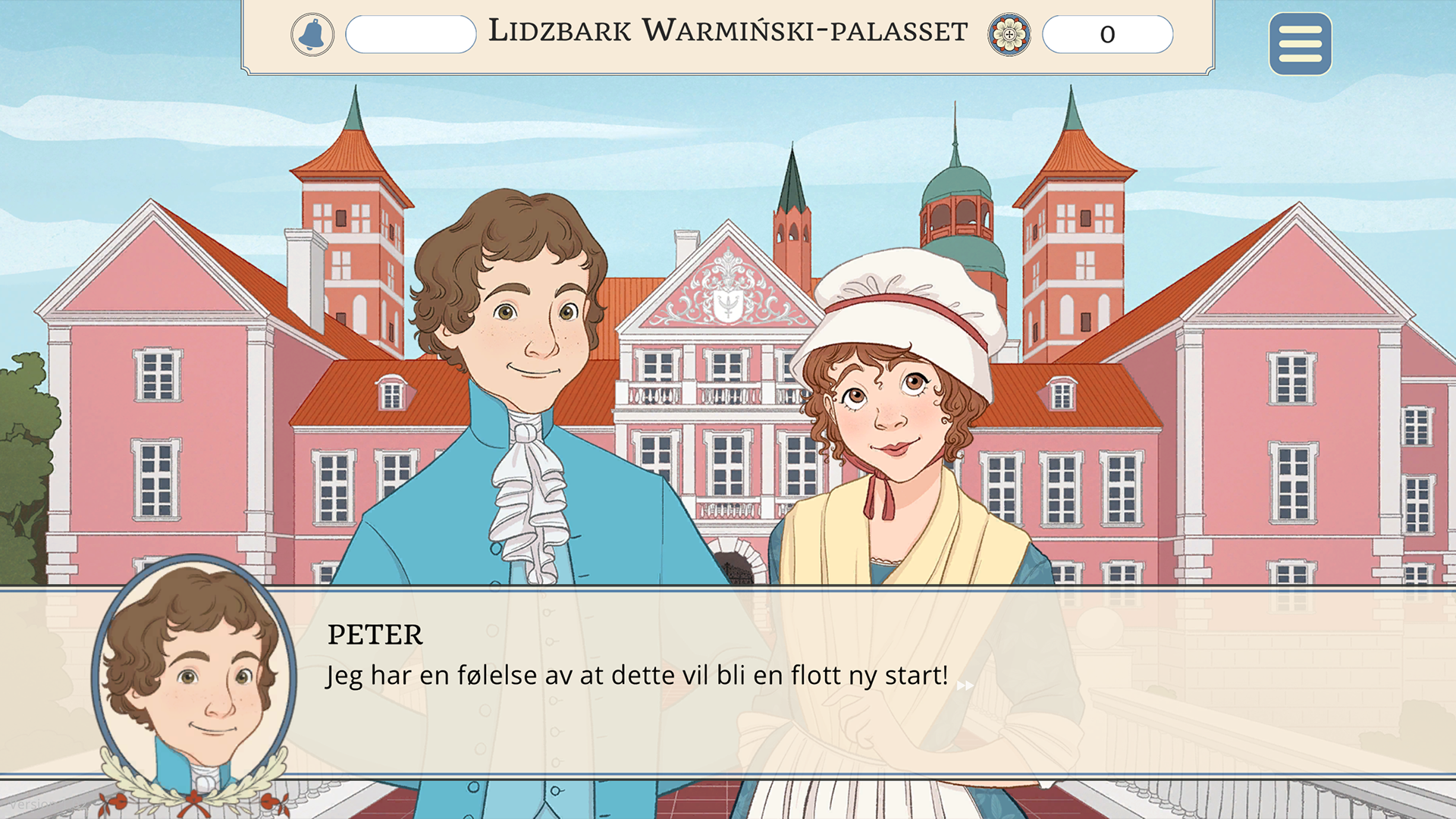 «A Day in the Palace» er et historisk spill der spillerens valg styrer historien. Du spiller som Peter og Marysia, nyankomne søsken til palasset i Lidzbark Warminski i 1772. Utviklet av Tidvis.