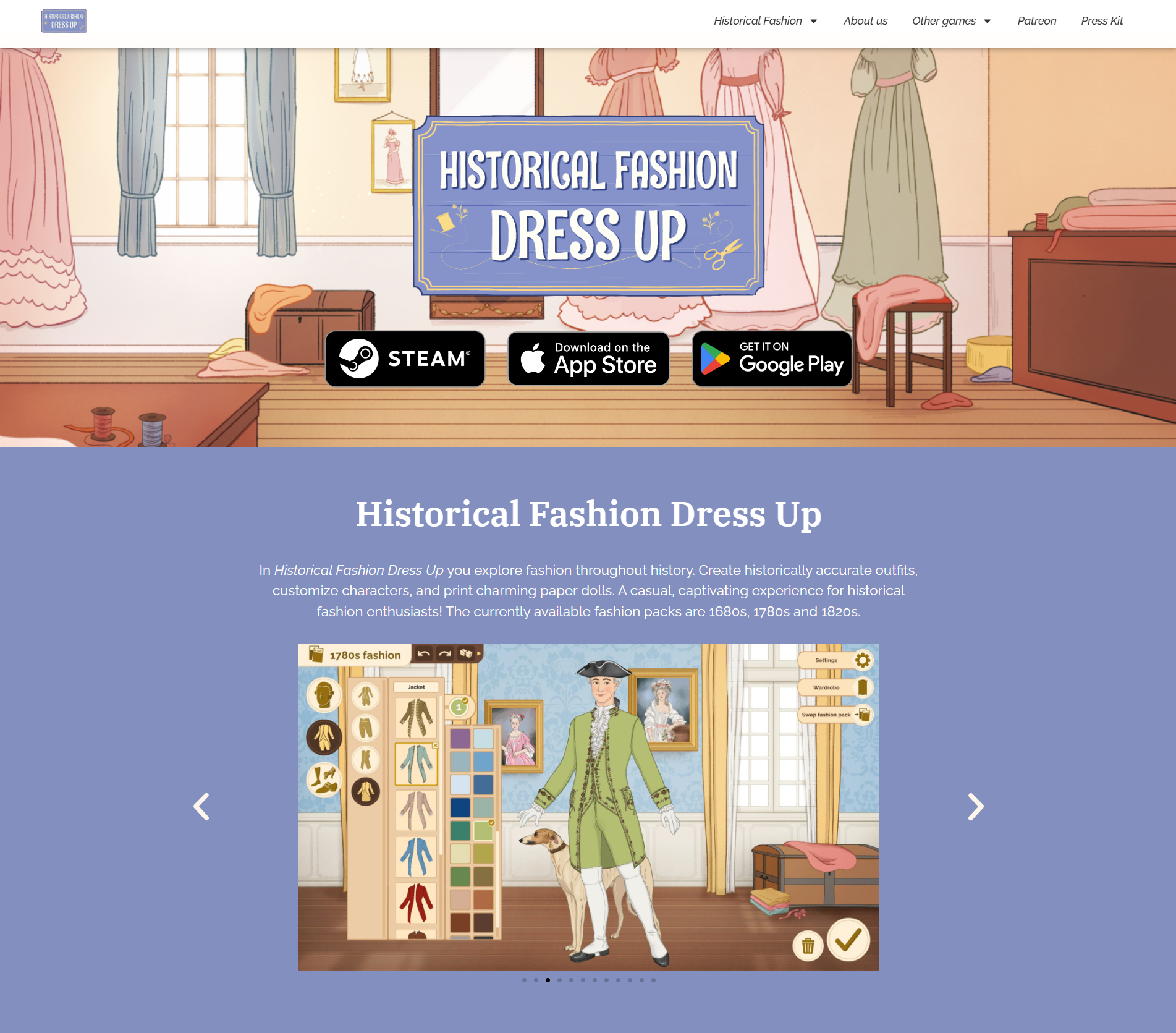Nettsidedesign for Historical Fashion Dress Up