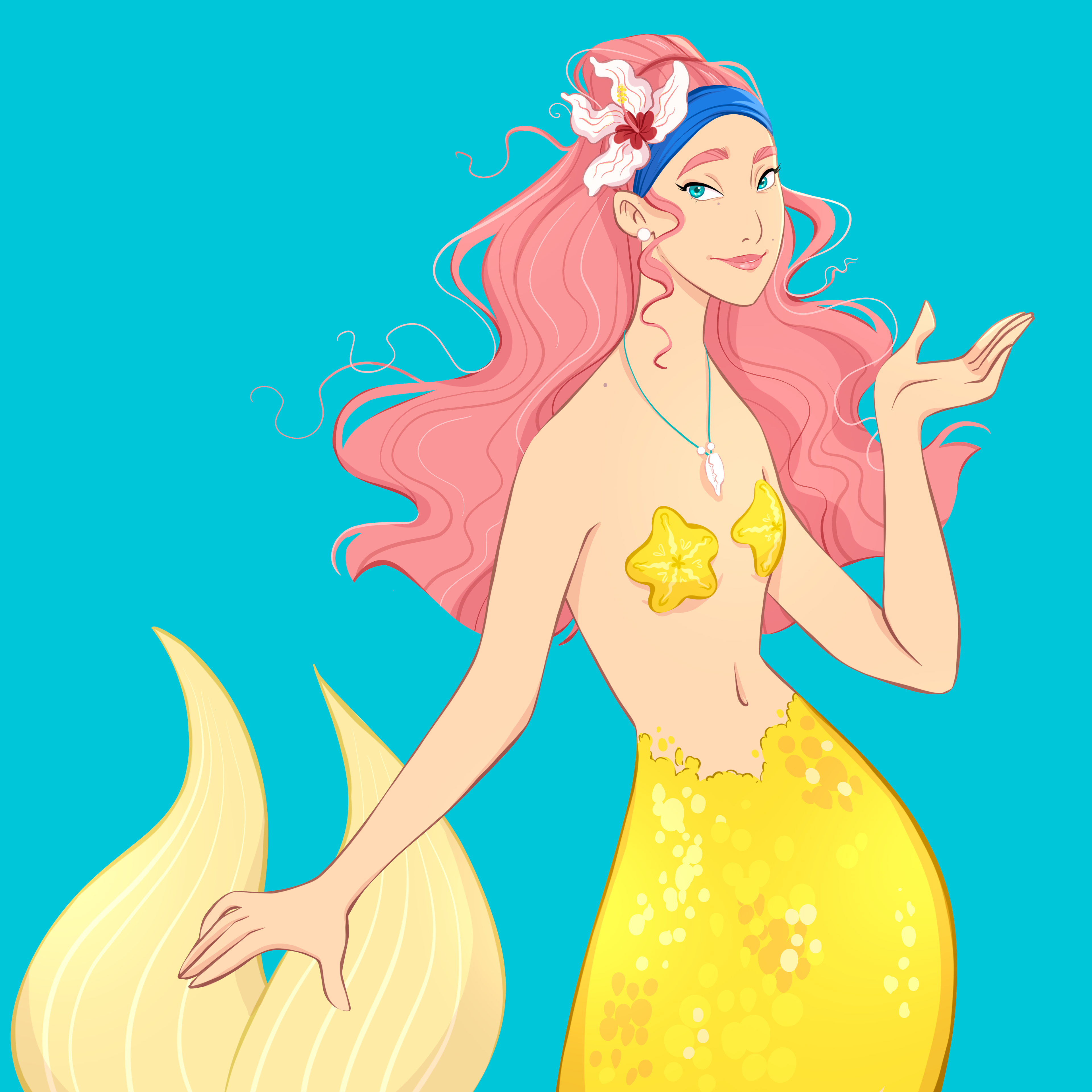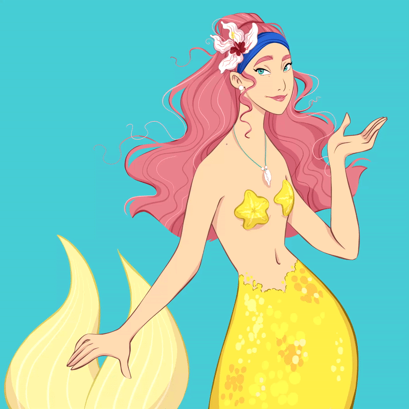 Animert illustrasjon av en tropisk havfrue. Animasjonen er gjort i Adobe After Effects.